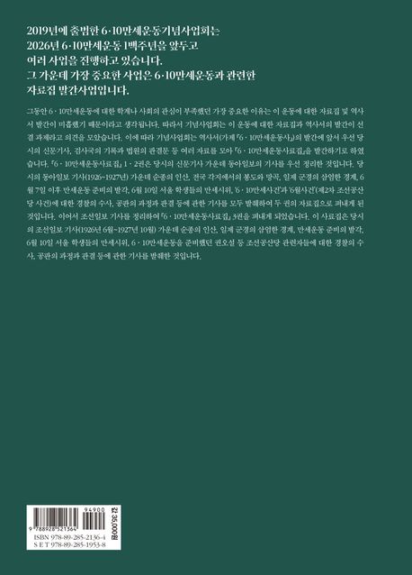 2023년에 발간된 1.2권에 이어, 1926년에 일어난 6 · 10 만세운동에 대한 신문기사, 검사국의 기록과 법원의 판결문 등 여러 자료들의 모음집이다.