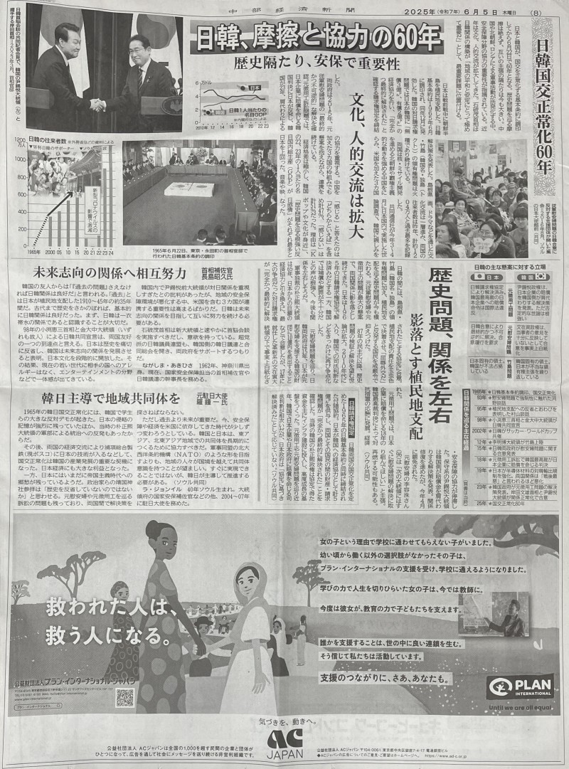 2025년 6월 5일자. < 산케이 신문 中部産経新聞> 제 8면. 라종일 이사장 인터뷰 기사